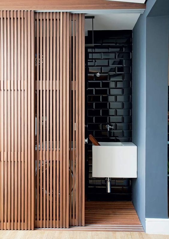 As portas de madeira dão um ar “rústico” e “sofisticado” ao ambiente.